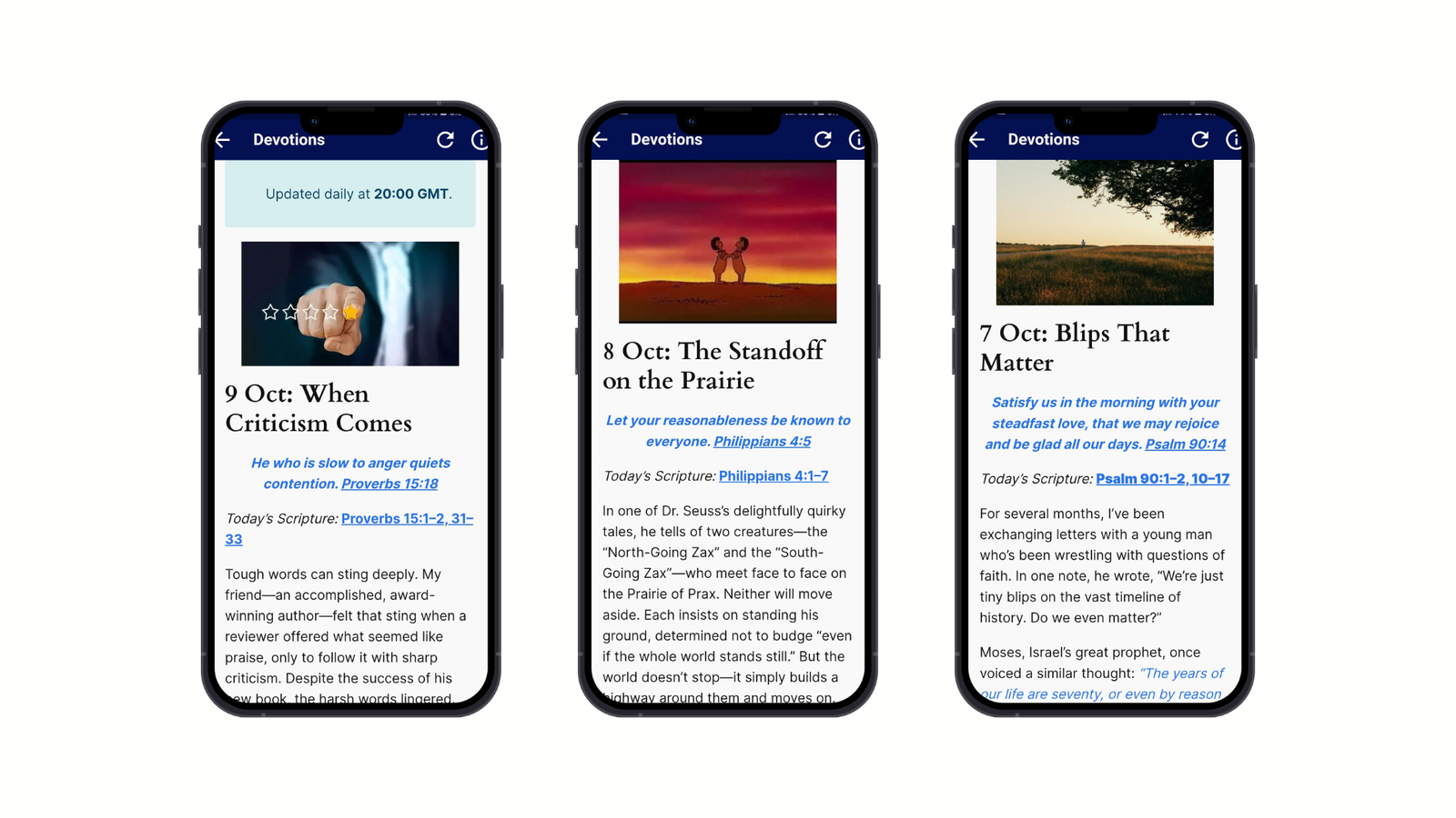 Receive fresh devotionals every day to guide your thoughts and strengthen your faith.